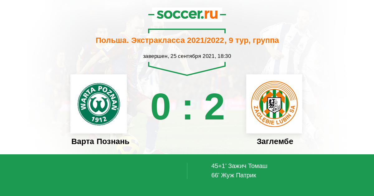 Протокол матча Варта Познань против Заглембе