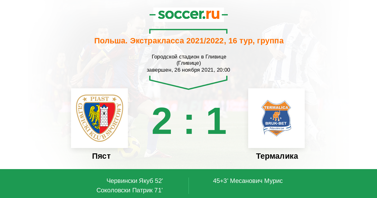 71' (2:1) Соколовски Патрик (18) (Кадзиор Дамиан (92))