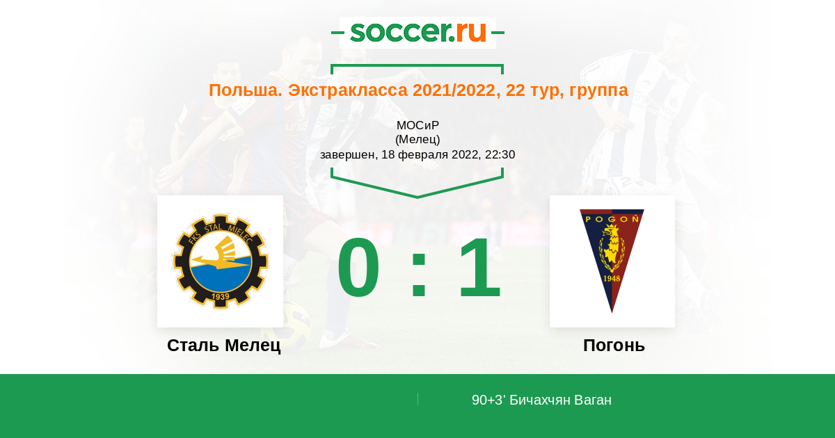 Протокол матча Сталь Мелец против Погонь