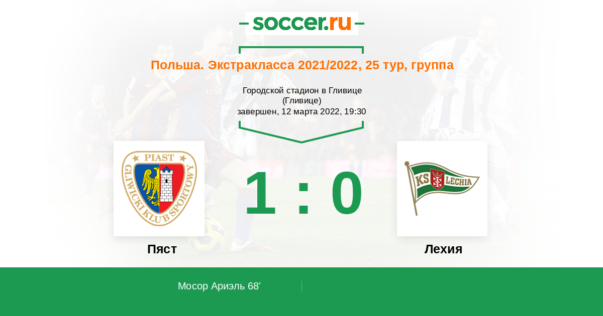 Протокол матча Пяст против Лехия