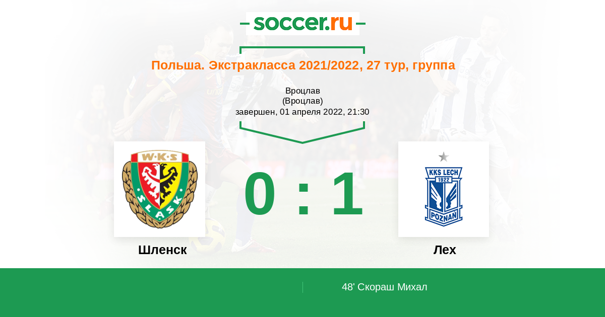 Протокол матча Шленск против Лех