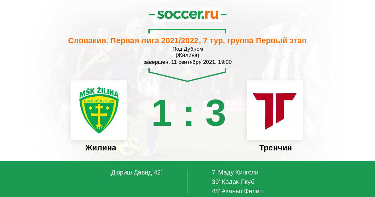 Протокол матча Жилина против Тренчин