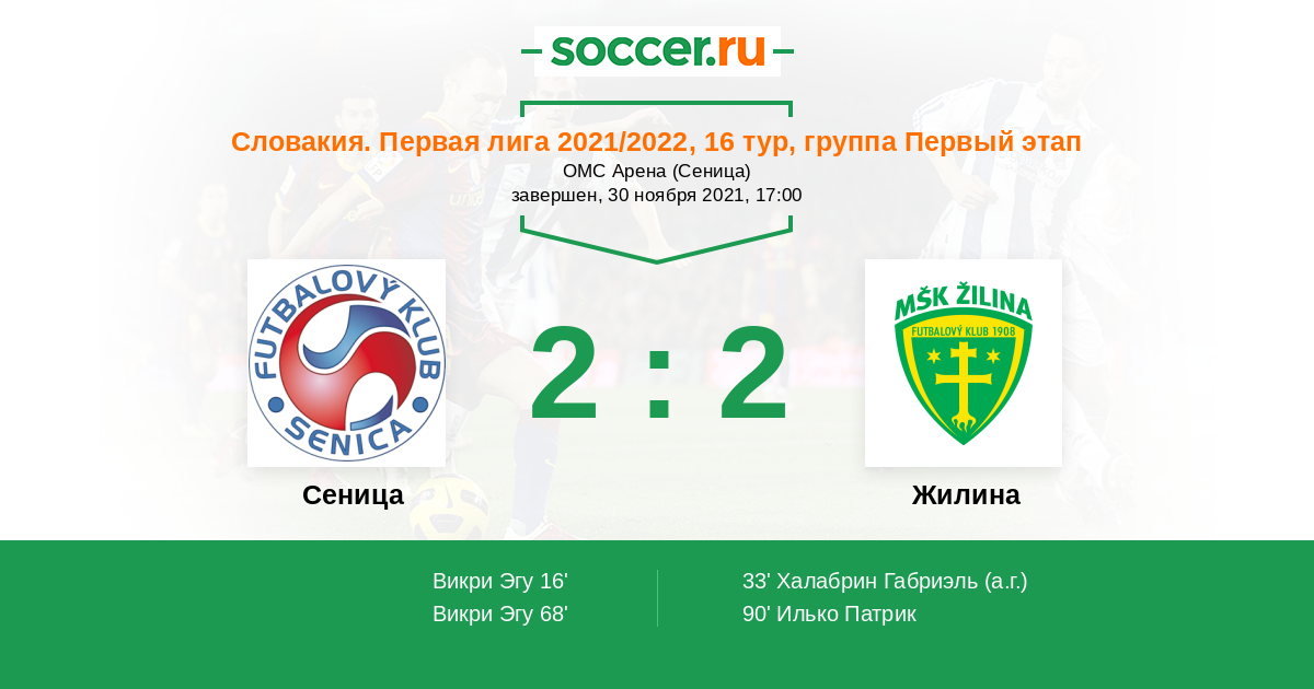 Протокол матча Сеница против Жилина