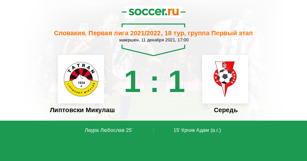 Протокол матча Липтовски Микулаш против Середь