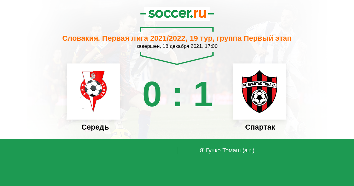 Протокол матча Середь против Спартак