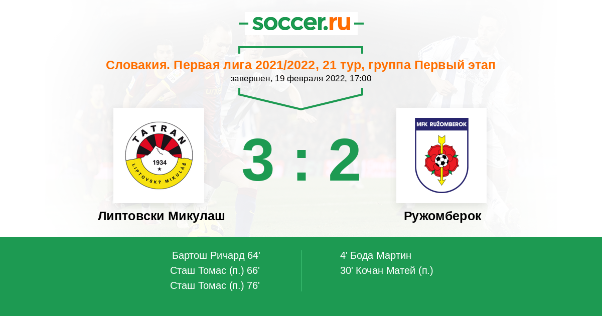 4' (0:1) Бода Мартин (18) (Кочан Матей (11))