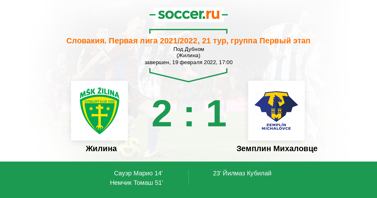 Протокол матча Жилина против Земплин Михаловце