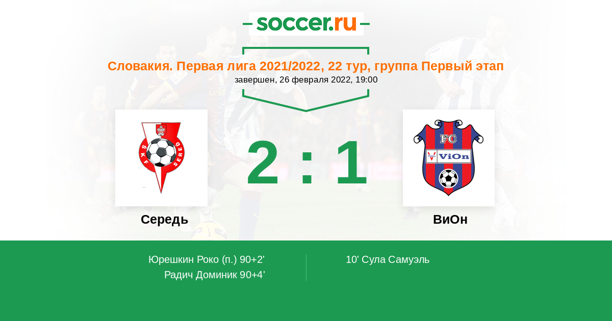 Протокол матча Середь против ВиОн