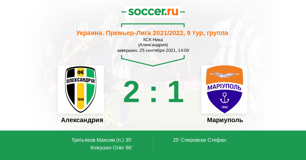Протокол матча Александрия против Мариуполь