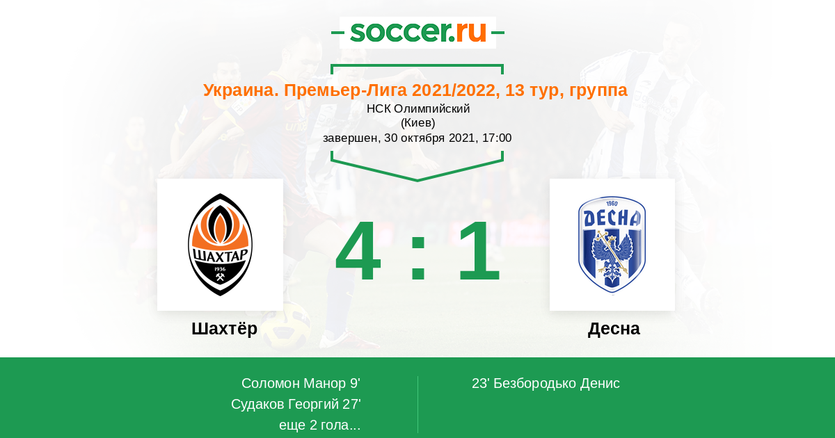 Протокол матча Шахтёр против Десна