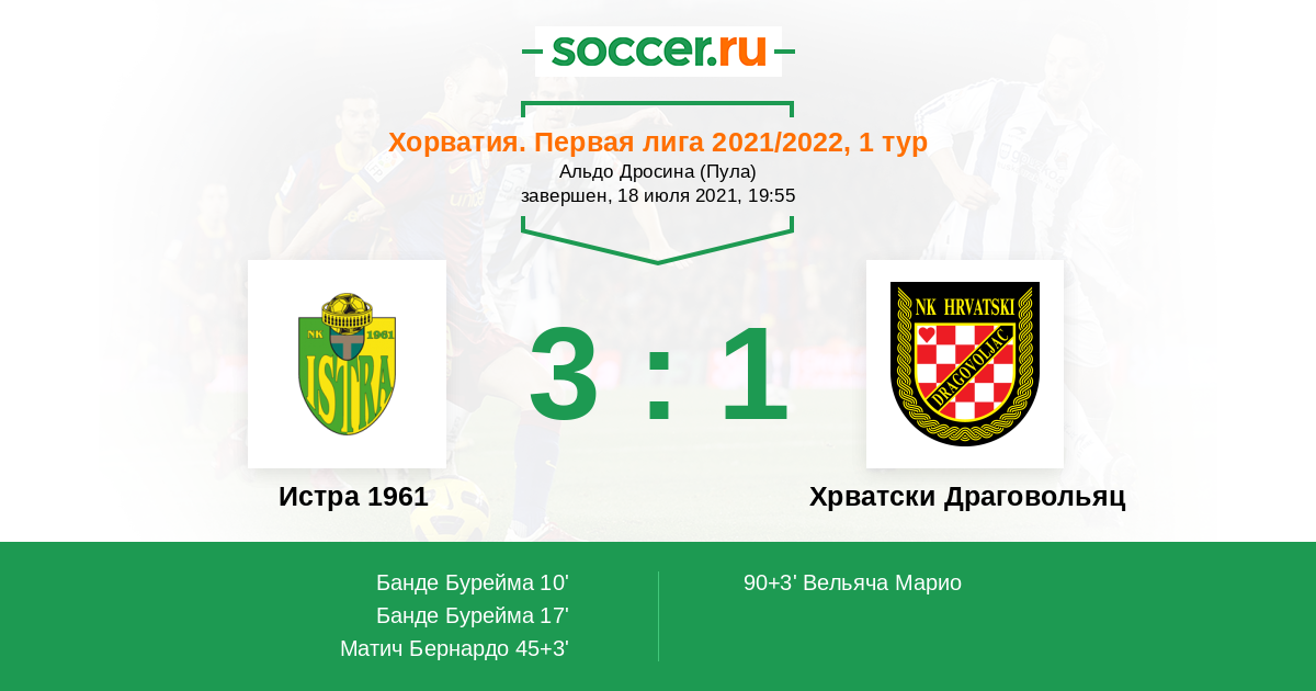 Протокол матча Истра 1961 против Хрватски Драговольяц