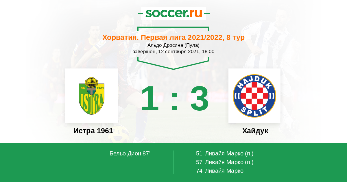 Протокол матча Истра 1961 против Хайдук