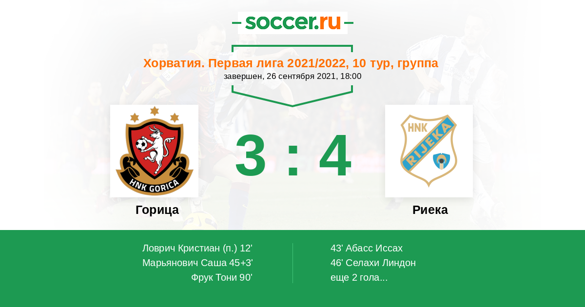 Протокол матча Горица против Риека