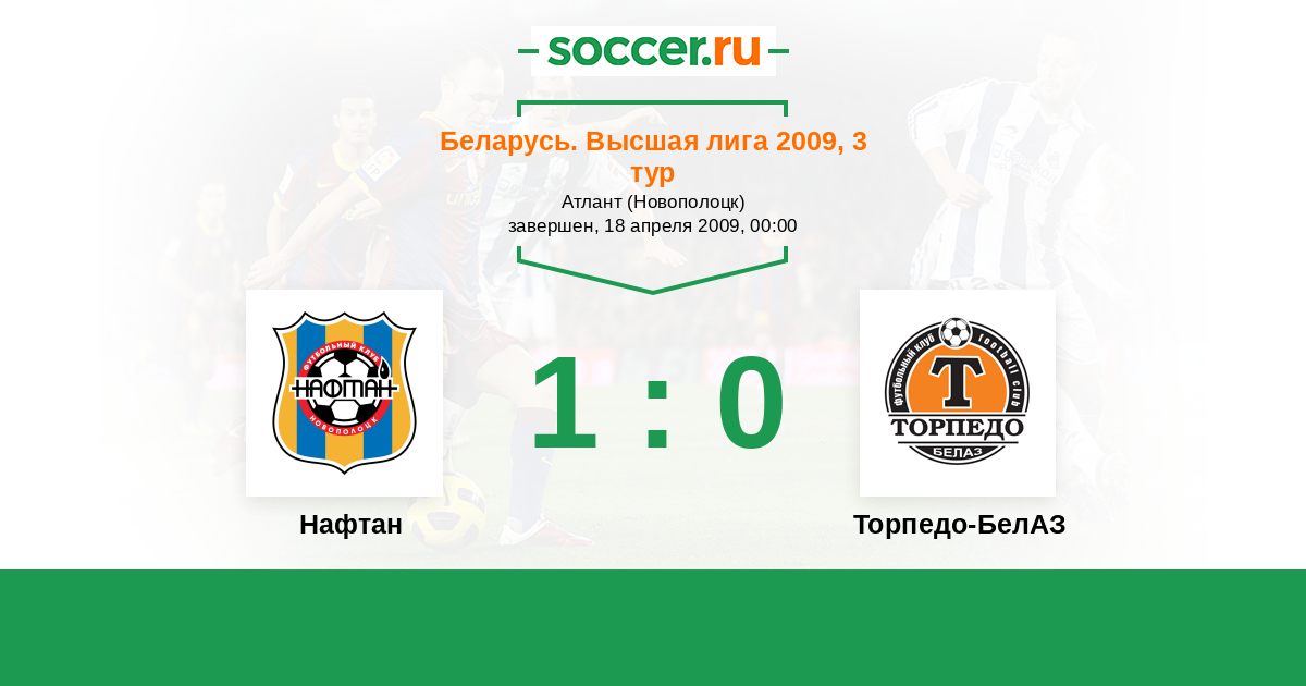 Беларусь. Высшая лига 22.08.2009 Торпедо-БелАЗ Логотип футбольный клуб Торпедо-БелАЗ (Жодино) 0:1 Логотип футбольный клуб Нафтан (Новополоцк) Нафтан
