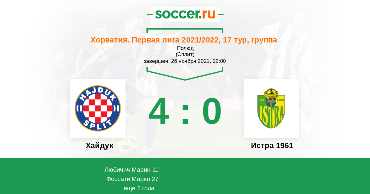 11' (1:0) Любичич Марин (90) (Биук Стипе (27))