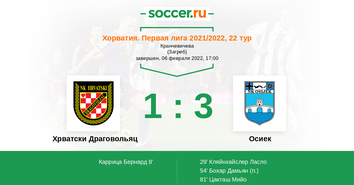 Протокол матча Хрватски Драговольяц против Осиек