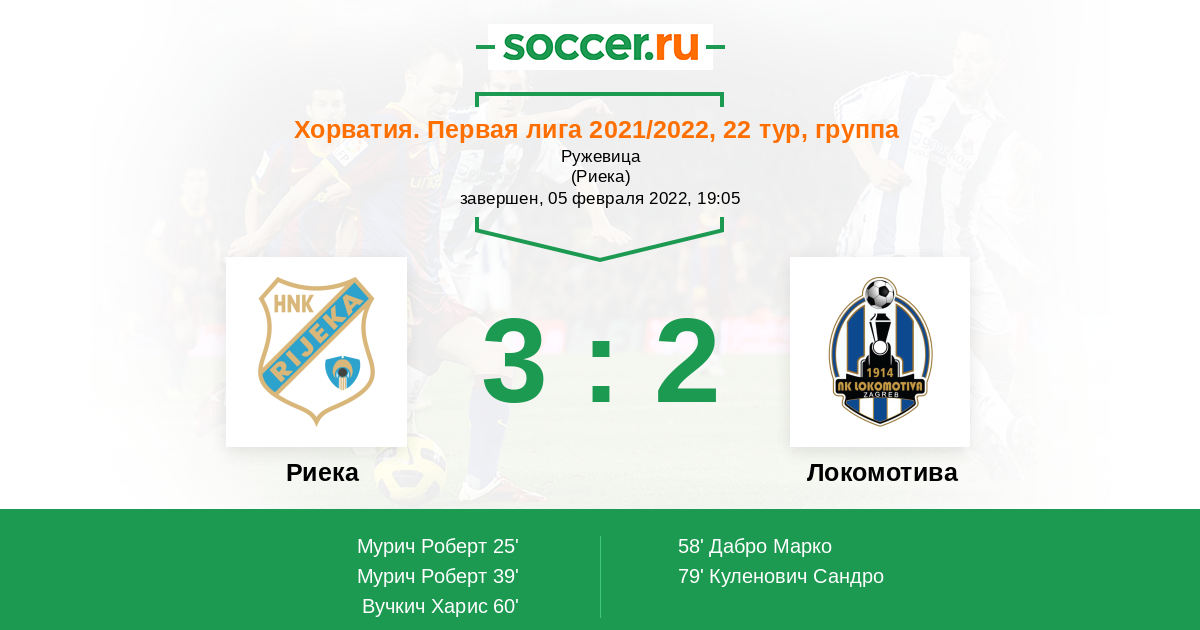 Протокол матча Риека против Локомотива