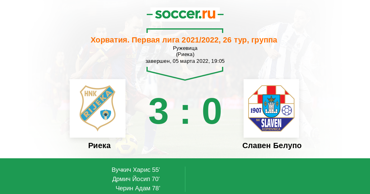 Протокол матча Риека против Славен Белупо