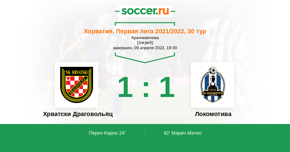 Протокол матча Хрватски Драговольяц против Локомотива