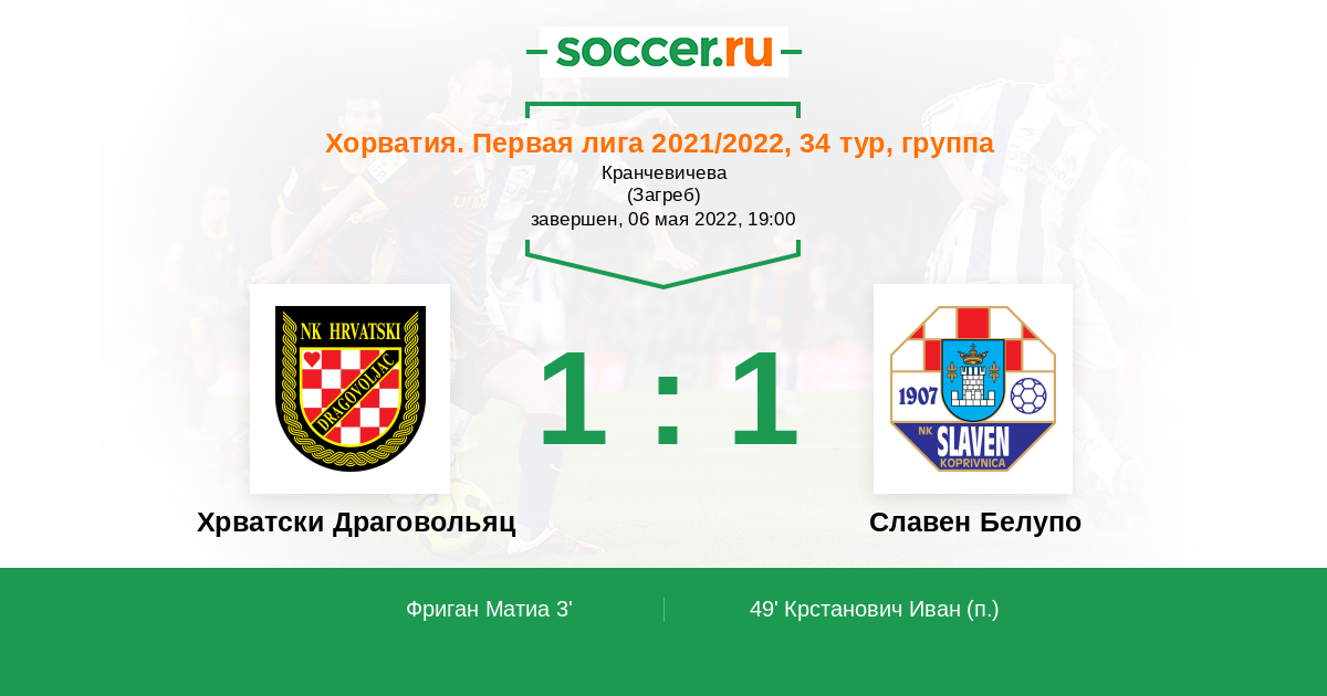 Протокол матча Хрватски Драговольяц против Славен Белупо