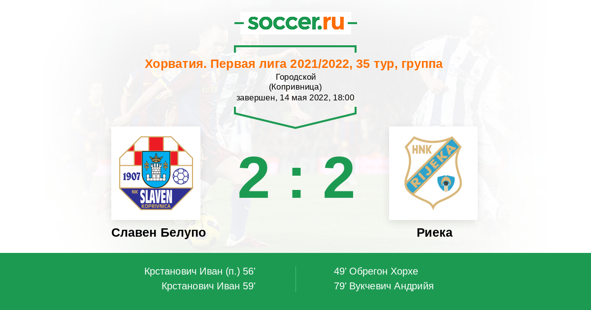 Протокол матча Славен Белупо против Риека