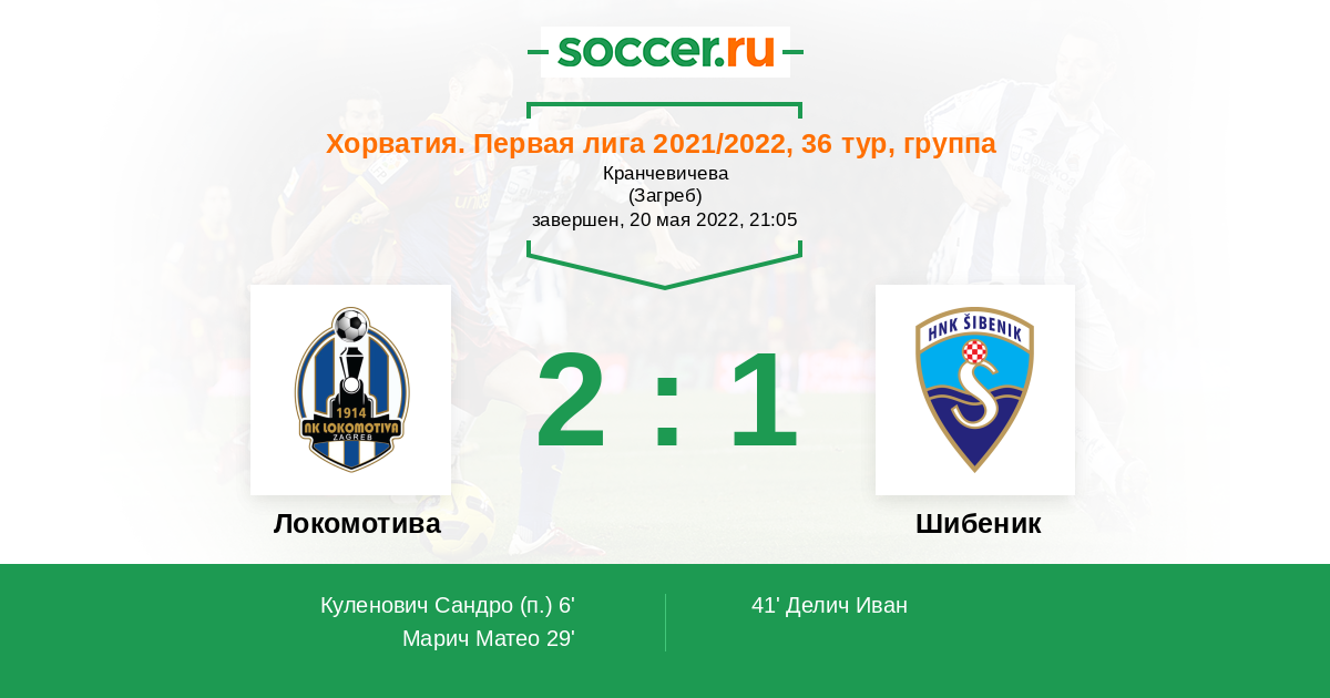 Протокол матча Локомотива против Шибеник