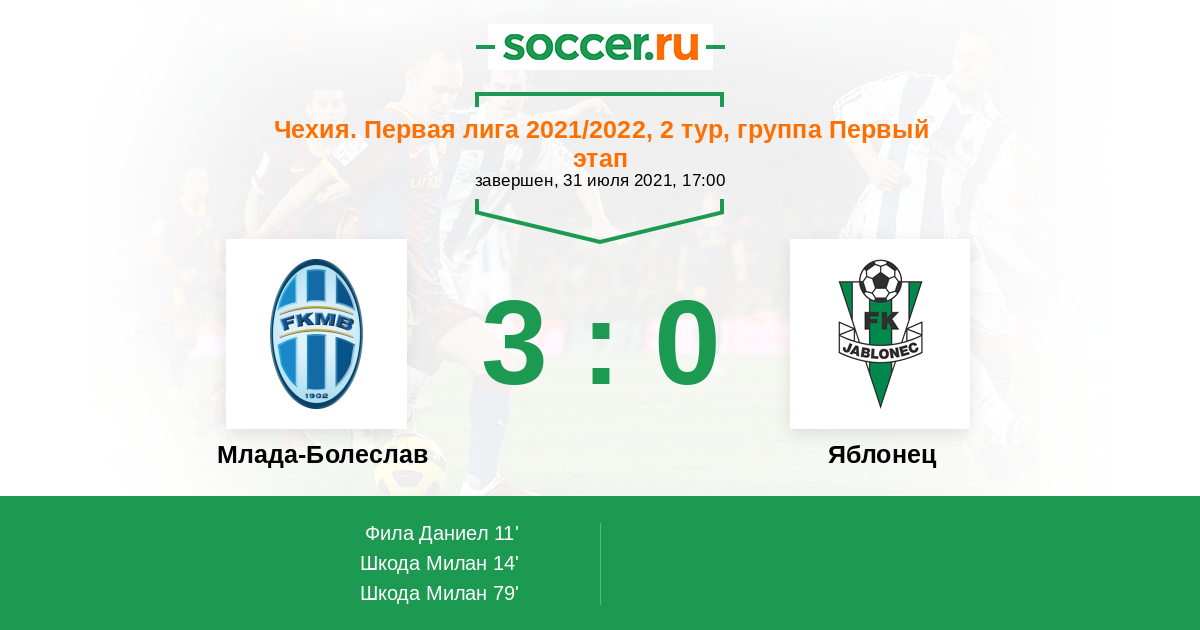 Протокол матча Млада-Болеслав против Яблонец
