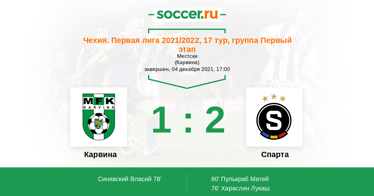 Протокол матча Карвина против Спарта