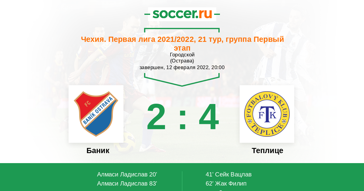 20' (1:0) Алмаси Ладислав (99) (Флейшман Иржи (25))
