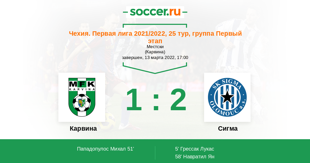 58' (1:2) Навратил Ян (30) (Жемелка Вацлав (2))
