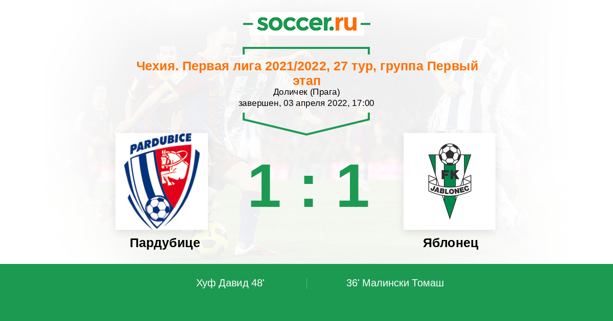 Протокол матча Пардубице против Яблонец