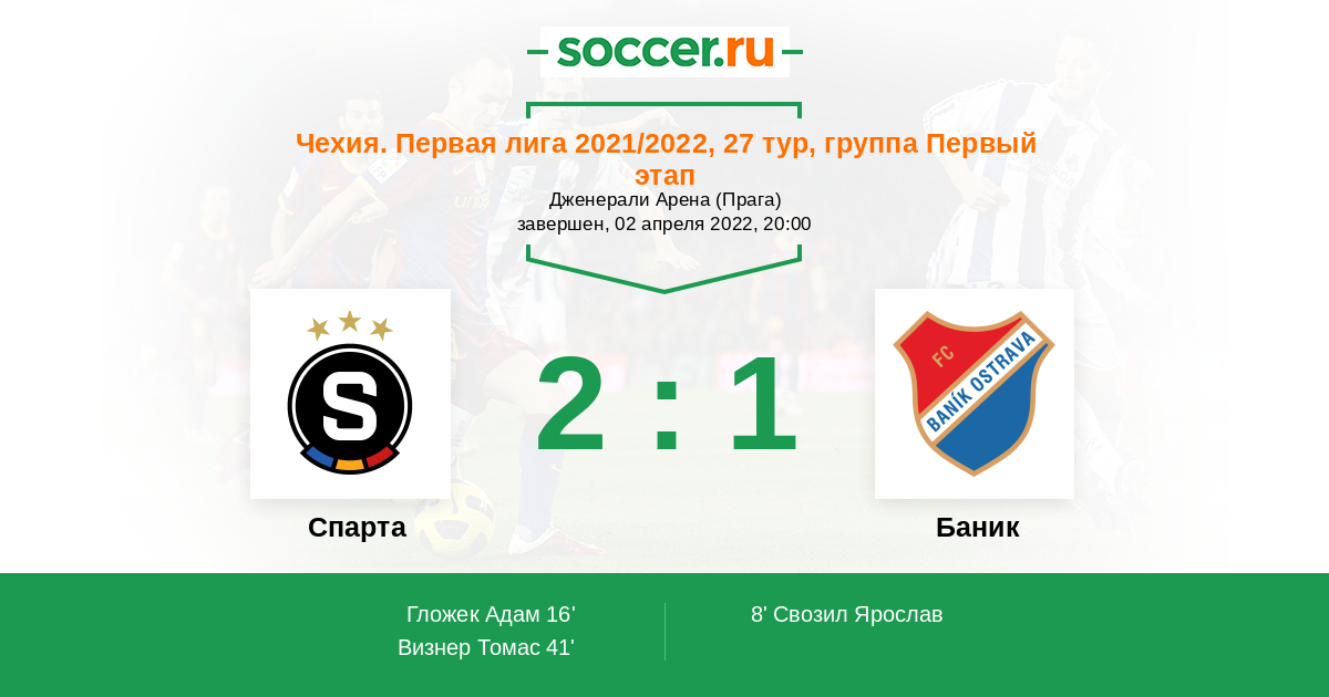 41' (2:1) Визнер Томас (28) (Дочкал Боржек (10))