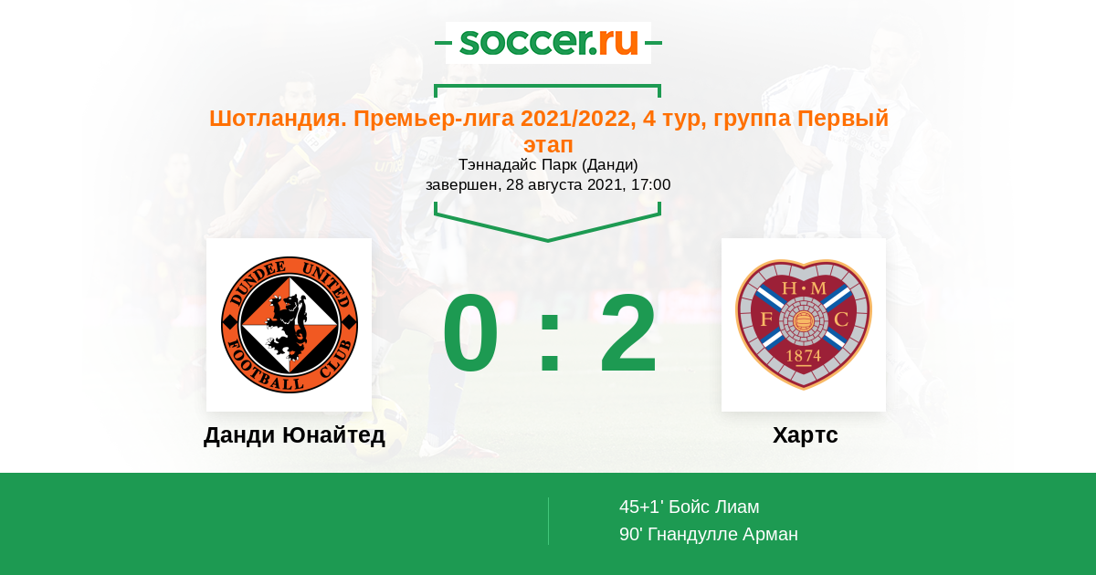 Протокол матча Данди Юнайтед против Хартс