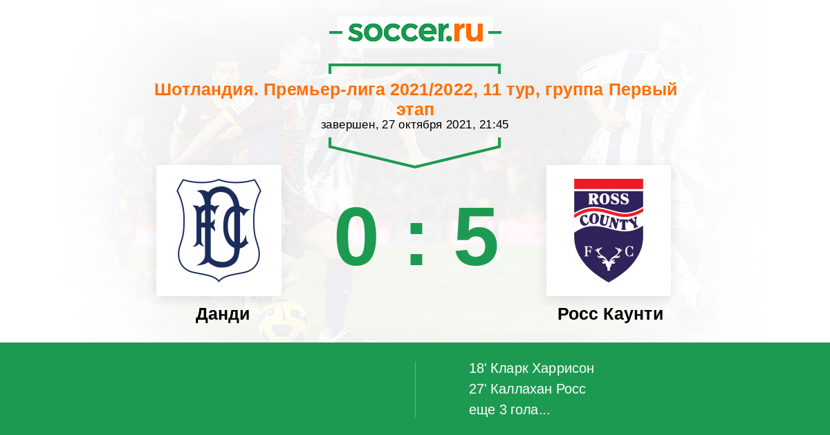 Протокол матча Данди против Росс Каунти
