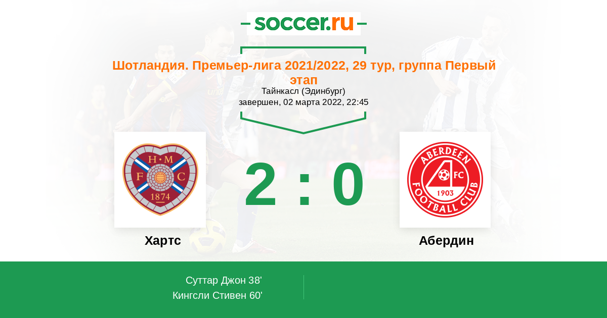 Протокол матча Хартс против Абердин
