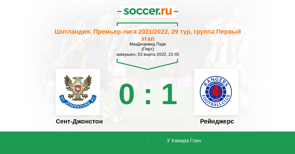 Протокол матча Сент-Джонстон против Рейнджерс