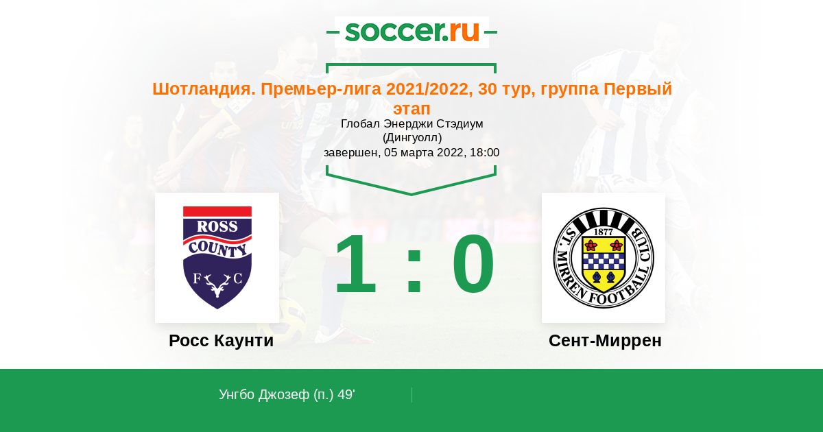 Протокол матча Росс Каунти против Сент-Миррен