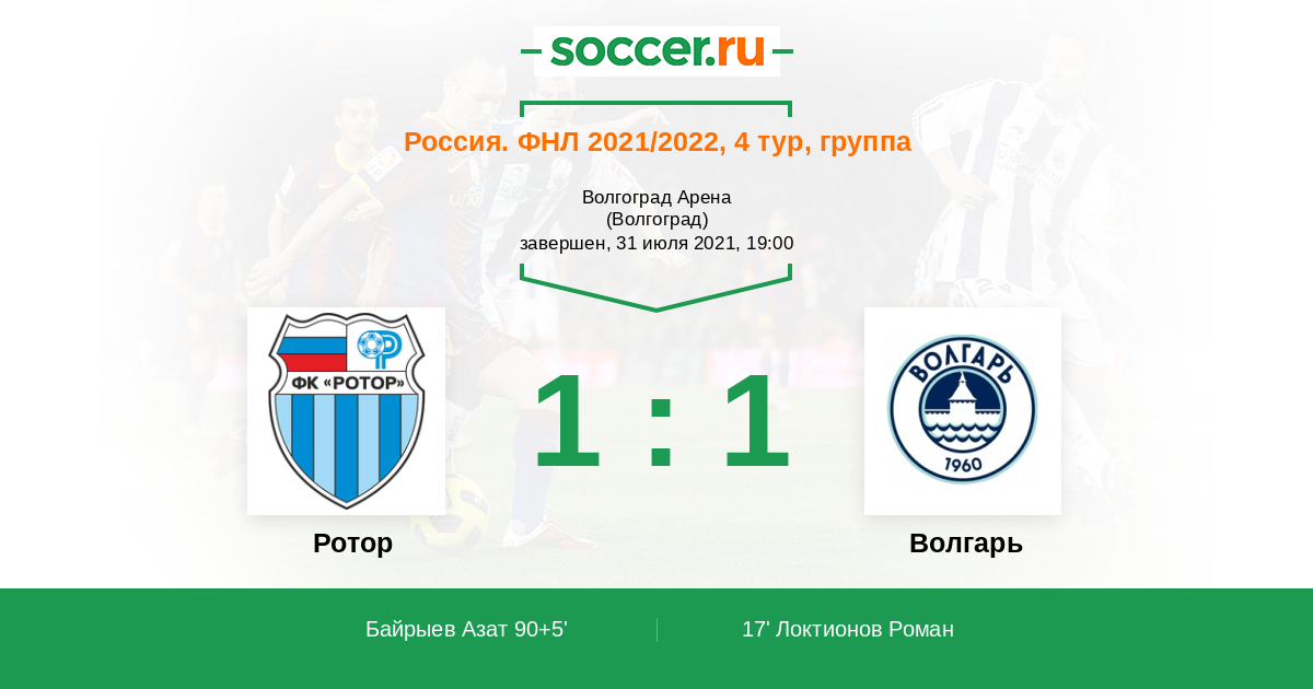 Протокол матча Ротор против Волгарь