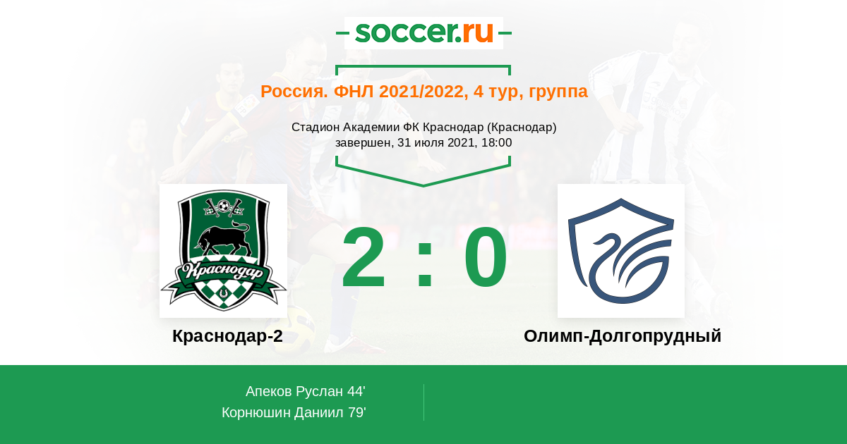 Протокол матча Краснодар-2 против Олимп-Долгопрудный