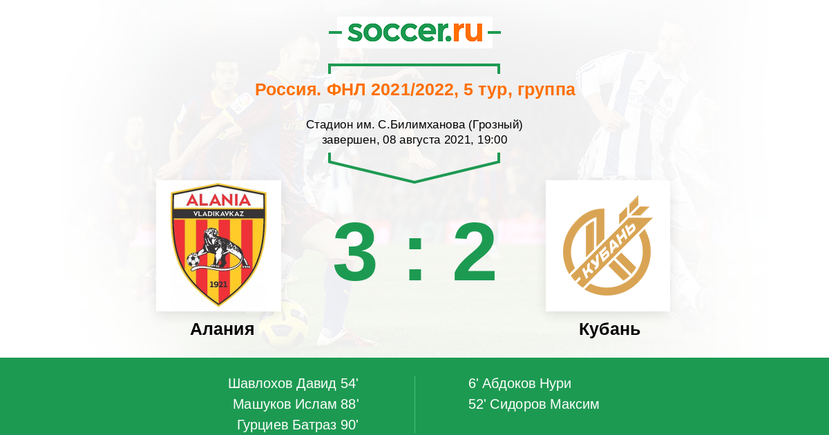 54' (1:2) Шавлохов Давид (3) (Кочиев Хетаг (15))