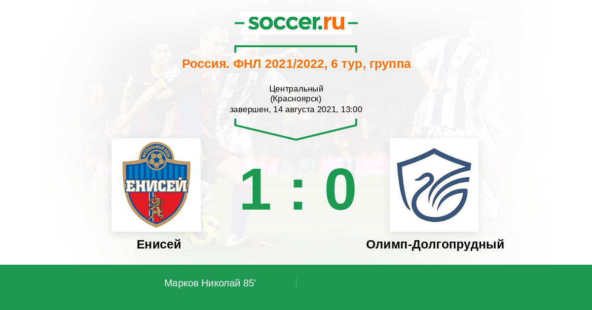 Протокол матча Енисей против Олимп-Долгопрудный