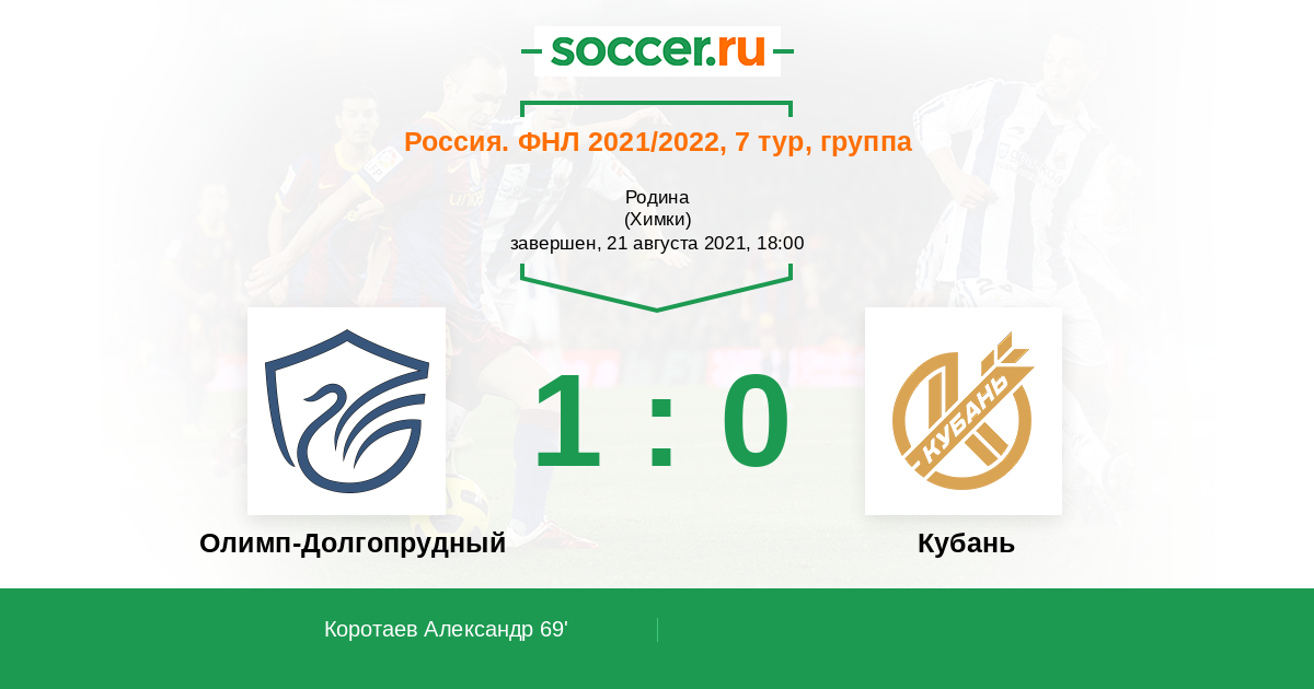 Протокол матча Олимп-Долгопрудный против Кубань