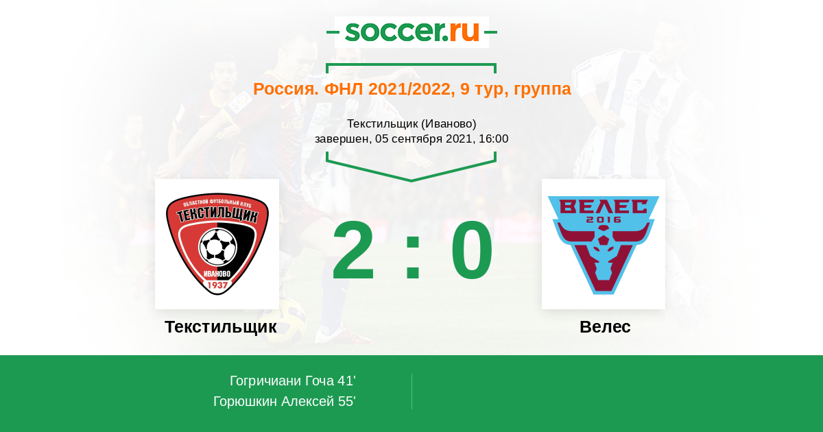 Протокол матча Текстильщик против Велес