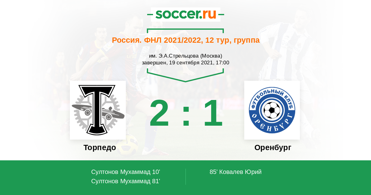Протокол матча Торпедо против Оренбург