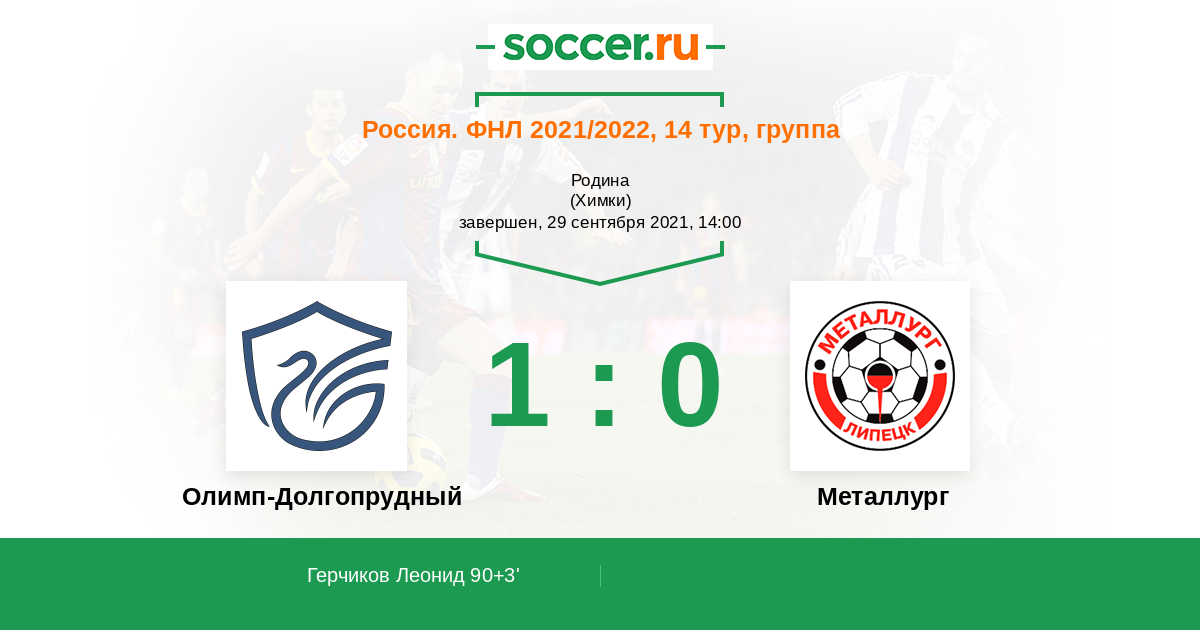 Протокол матча Олимп-Долгопрудный против Металлург