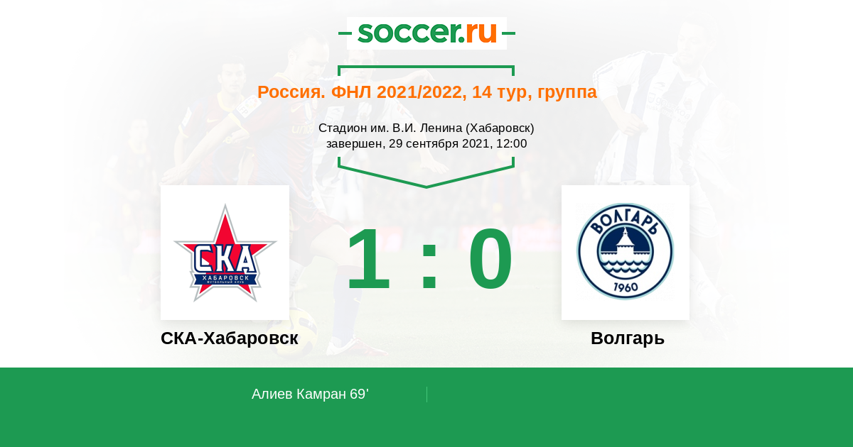 Протокол матча СКА-Хабаровск против Волгарь