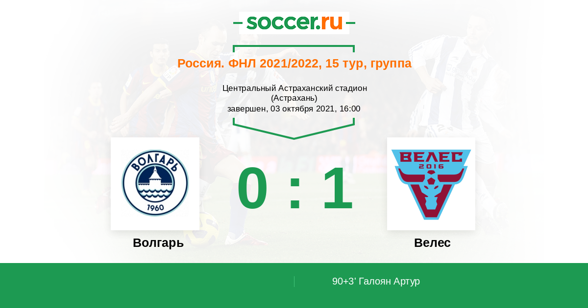 Протокол матча Волгарь против Велес