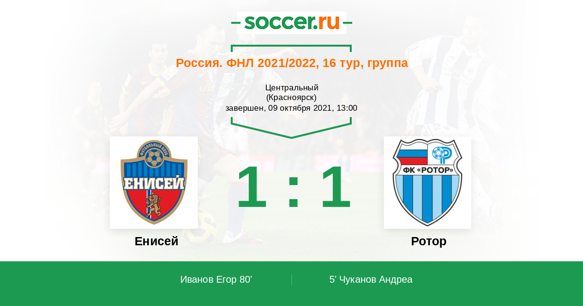 Протокол матча Енисей против Ротор