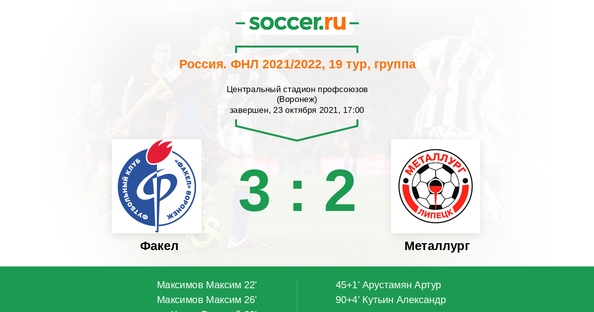 Протокол матча Факел против Металлург