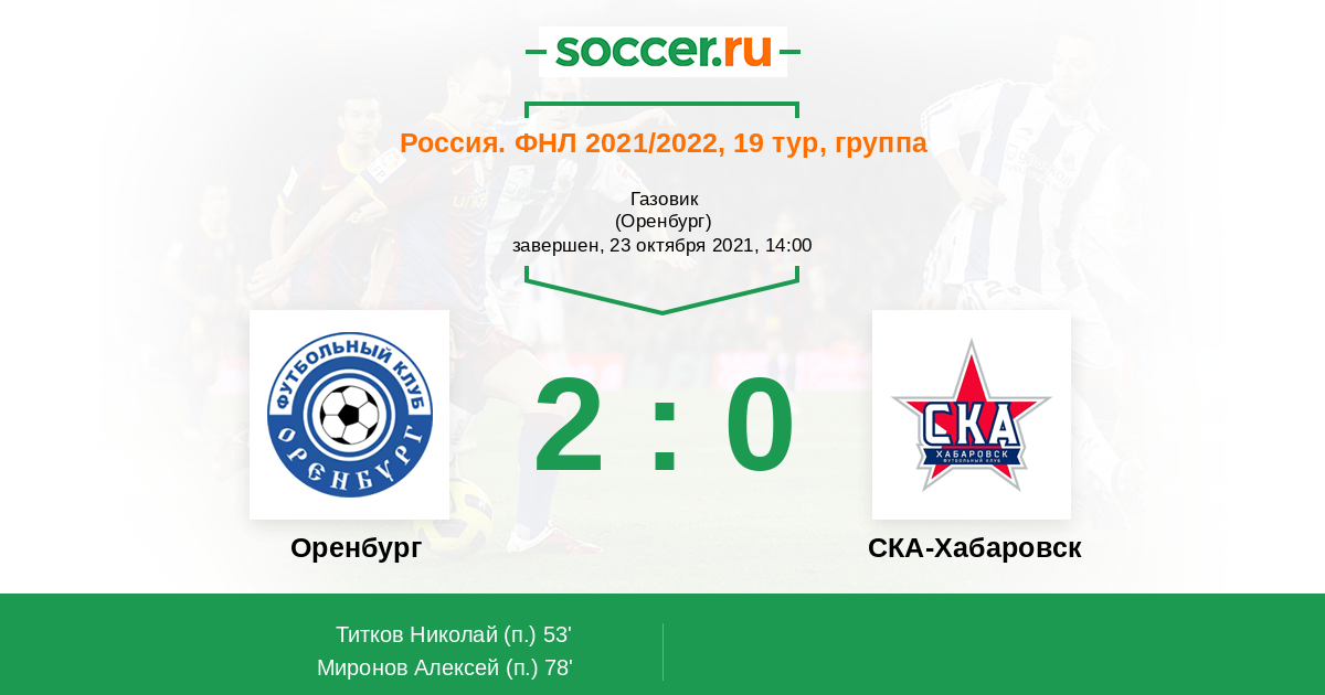 Протокол матча Оренбург против СКА-Хабаровск